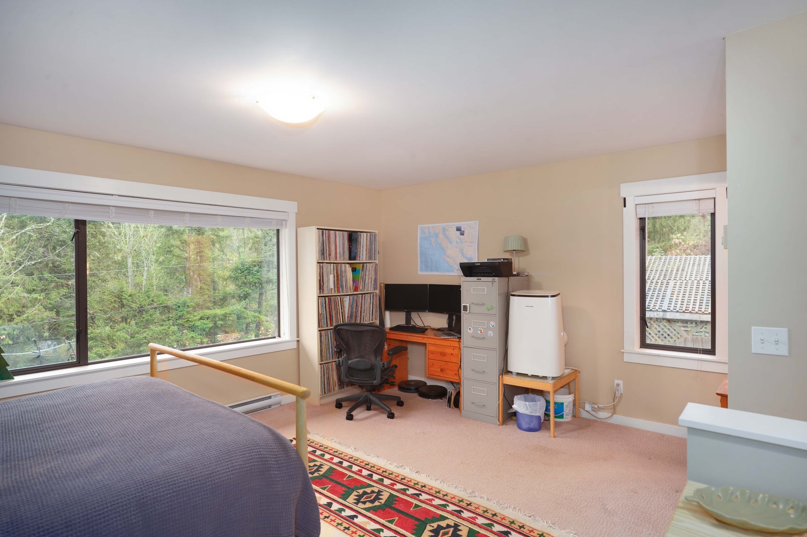 Two comfortable bedrooms are located on the main level, while the entire upper floor is dedicated to a spacious primary suite—over 400 sq. ft.—complete with a four-piece ensuite and excellent closet space. Thoughtful custom cabinetry carries through to the bathrooms, adding continuity and warmth.